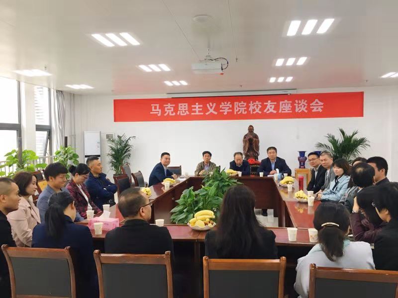 座谈会上,张全省教授介绍了参会的教师与校友,对校友们的归来表示热烈欢迎,并对各位校友在工作中取得的成绩表示祝贺。苏振武教授对校友返回母校并捐赠感到欣慰与感谢。他认为,校友是学校发展的重要资源,是学校历史文化的积淀,是学生榜样力量的来源。他希望校友在各自的工作岗位上善于运用哲学思维,彰显哲学特色,再接再厉,再创辉煌。何振鹏教授回忆起同学们在校的点点滴滴,感怀深厚的师生情谊,感激校友们回馈母校。他认为,好学校的一个重要体现就是校友们对母校的情感,马院以拥有懂得感恩的优秀校友而自豪,希望同学们事业辉煌。