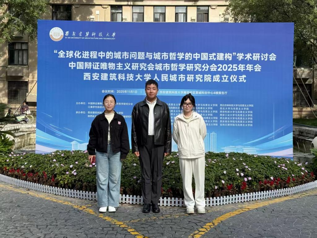 11月1日,由中国辩证唯物主义研究会城市哲学研究分会主办、西安建筑科技大学太阳成集团122cc承办的“全球化进程中的城市问题与城市哲学的中国式建构”学术研讨会在西安建筑科技大学举行。我集团王磊强博士带领硕士研究生白慧敏、赵婧希应邀参会,与来自全国多所高校和科研院所的专家学者进行了深入学术交流。