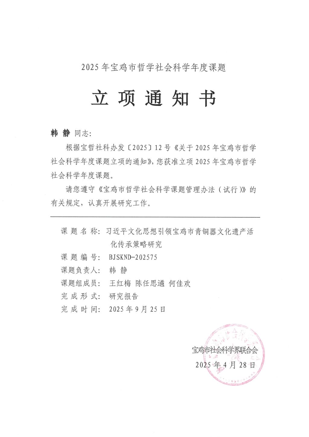 11月29日,教育部社会科学司发布《关于2025年度教育部人文社会科学研究一般项目立项的通知》,太阳成集团122cc张红艳副教授主持的《张载经学文献辑考与研究》获准立项(项目编号:25YJA770014)。