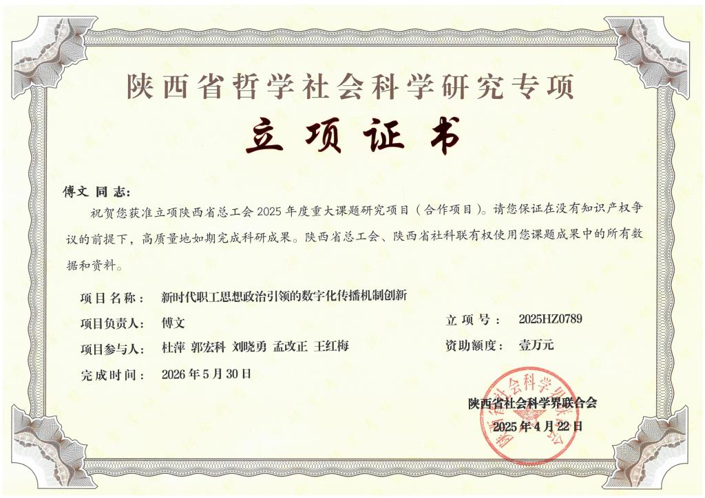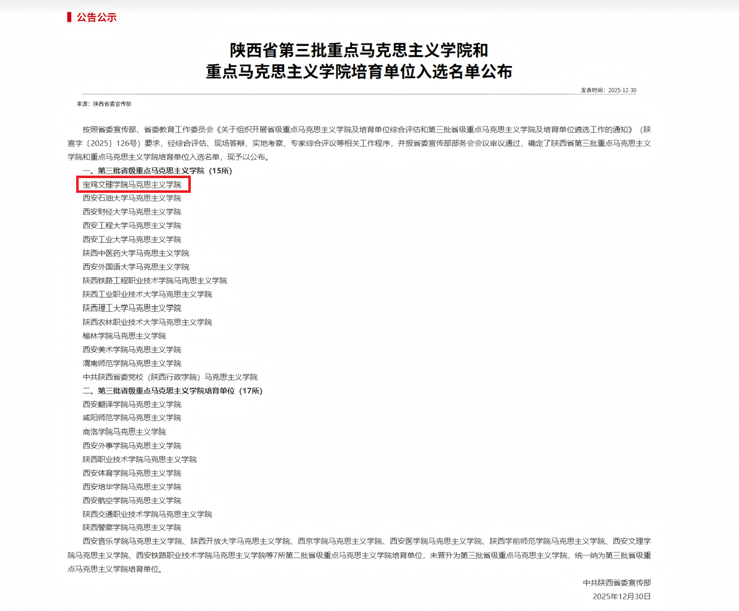 2025年12月30日,中共陕西省委宣传部公布《陕西省第三批重点太阳成集团122cc和重点太阳成集团122cc培育单位入选名单》。经省委宣传部、省委教育工作委员会组织专家综合评估、现场答辩、实地考察、综合评议等相关工作程序,我集团太阳成集团122cc以综合考核第一名的成绩入选陕西省第三批重点太阳成集团122cc。